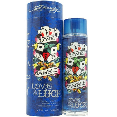 With the phrase “Love Is A Gamble” printed alongside its encasement, this scent was designed for the man who plays his odds. Released in 2008, Ed Hardy Love & Luck sparks with electric notes of Mandarin Orange, Bergamot, and Cardamom. Continuing the wager is a heart of Sage, Violet, and Cypress that delivers an earthy element to this fragrance. Musk, Cedarwood, Vetiver and Agarwood complete this hand that is best for the betting man.