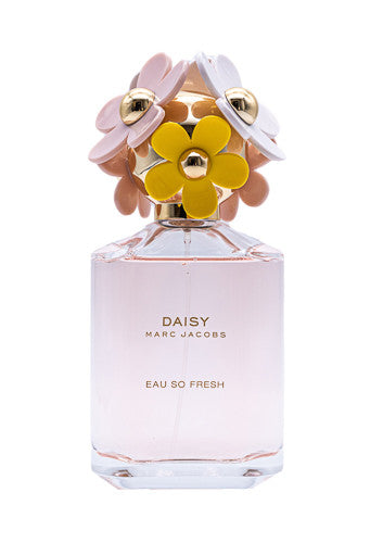 Spotted in a field of daisies is a gold topper with colorful daisy flowers resting atop. Daisy Eau So Fresh Eau de Toilette by Marc Jacobs is a fruity and floral blossom. Sprouted in 2011, this scent unravels with Grapefruit, Pears, and Raspberries. Middle notes hold Violet, Apple Blossom, and Wild Rose close to the heart. The base settles the scent with Musk, Cedarwood, and Plum for a soothing dry down.
